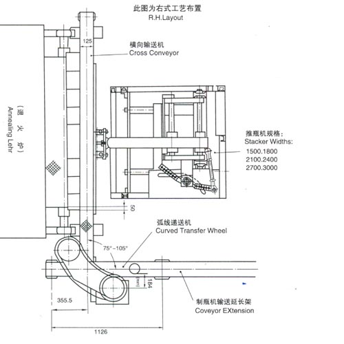 該機(jī)組是我廠在1988年消化吸收西德派尼康姆公司的技術(shù)制造的,具有國際九十年代先進(jìn)水平,可與QD4A、QD6A、QD6C、QD8A、QD8D等單滴料制瓶機(jī)和六組 、八組、十組、十二組、雙滴料制瓶機(jī)配套使用;與供料機(jī)、制瓶機(jī)保持嚴(yán)格的同步運(yùn)行,將玻璃制品連續(xù),等距離地自動(dòng)排列,避免碰撞,倒伏,磨擦現(xiàn)象,有效地提高玻璃制品的合格率,并保證其退火質(zhì)量,為冷端噴涂提供了良好的條件,該機(jī)組適用于任何形式任何規(guī)格的退火爐,尤其適用于電加熱的退火爐。